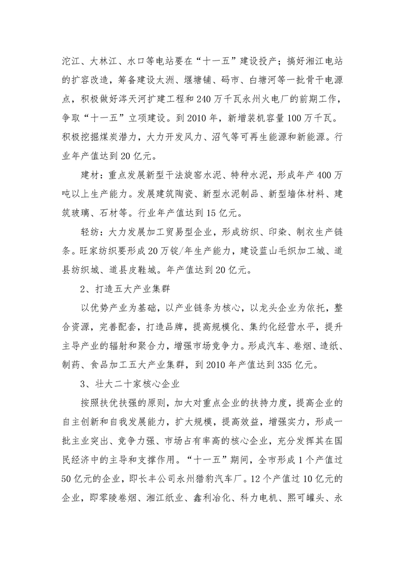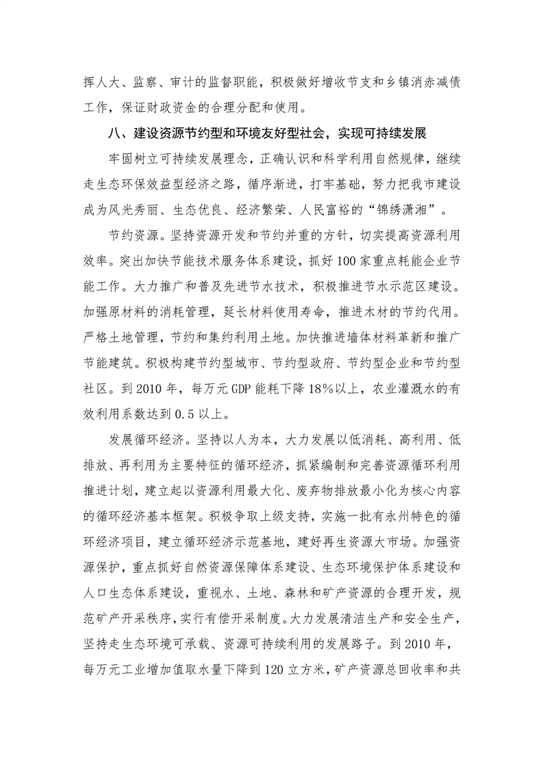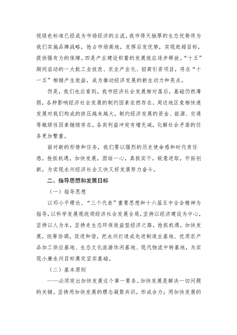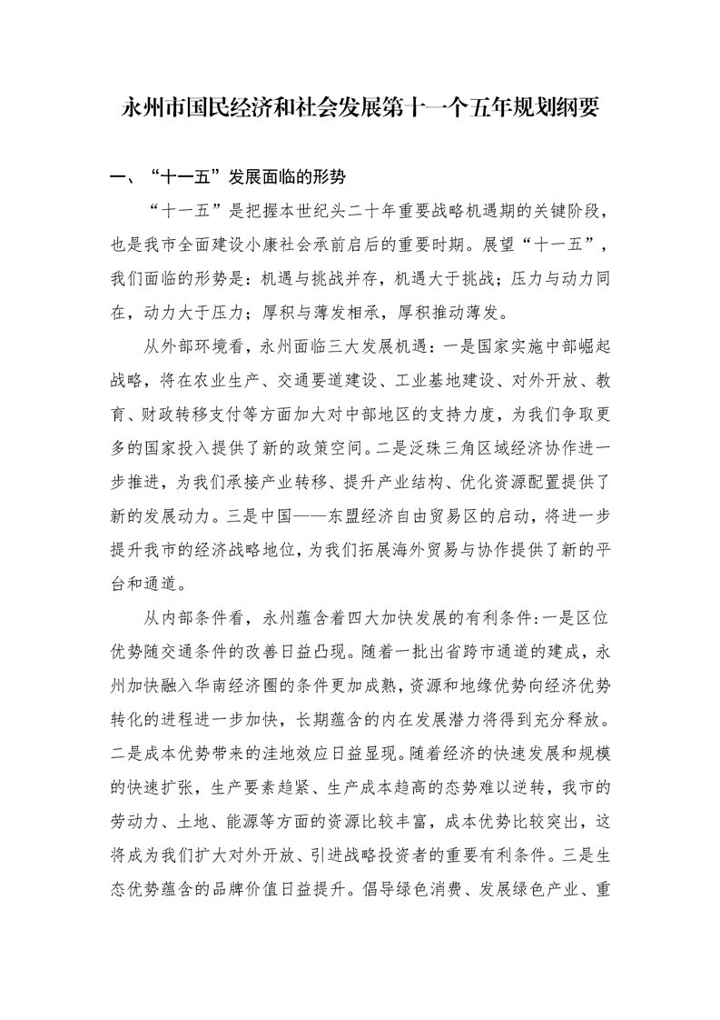 永州市國民經濟和社會發展第十一個五年規劃綱要