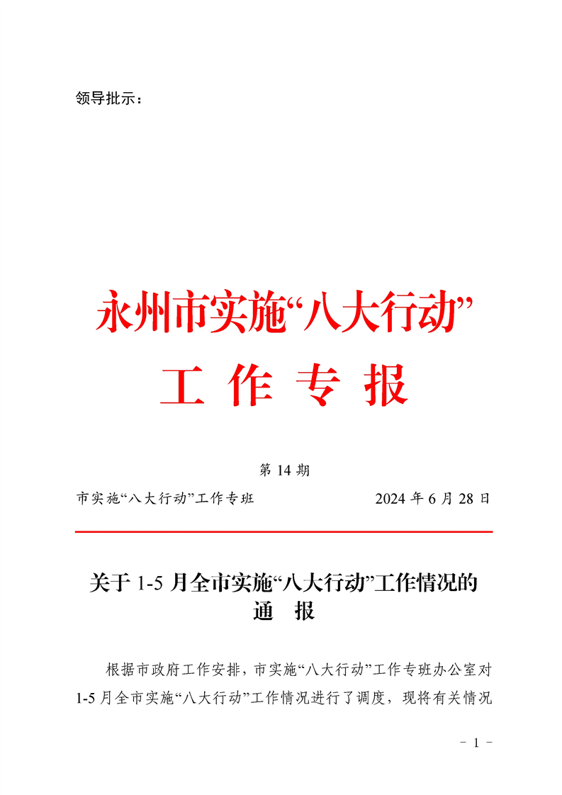 永州市實施“八大行動”工作專報(第14期)