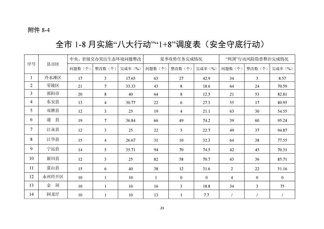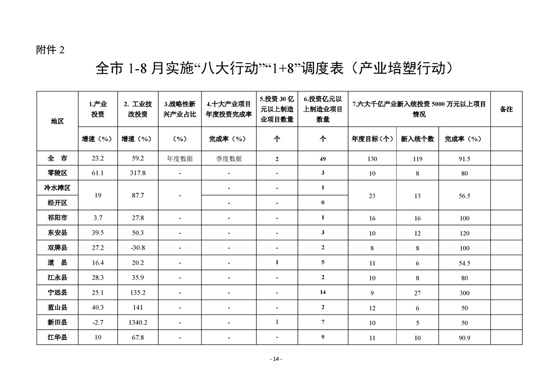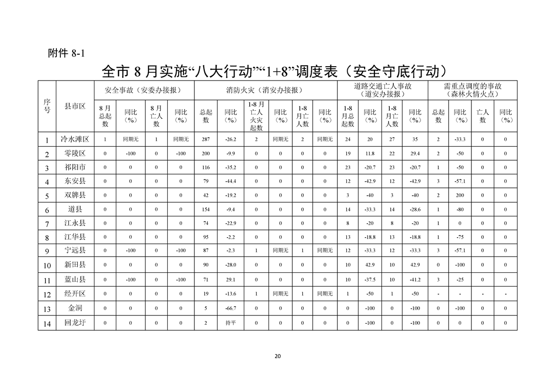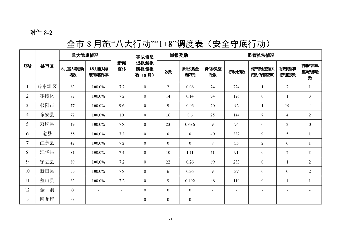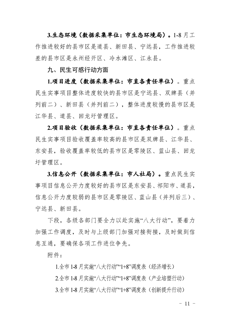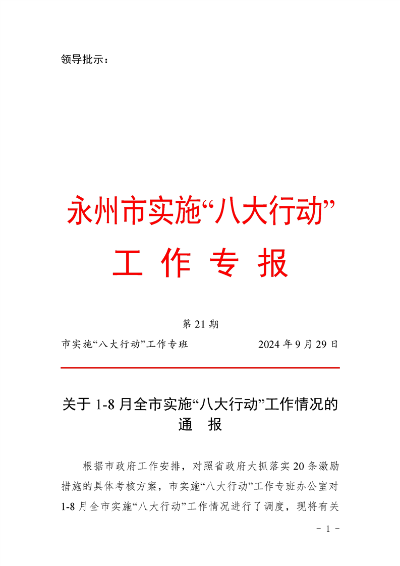 永州市實施“八大行動”工作專報(第21期)(1-8月通報)