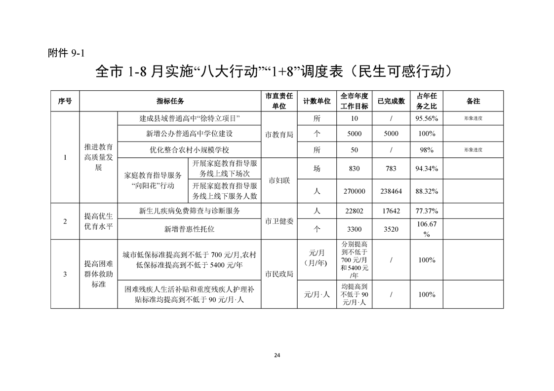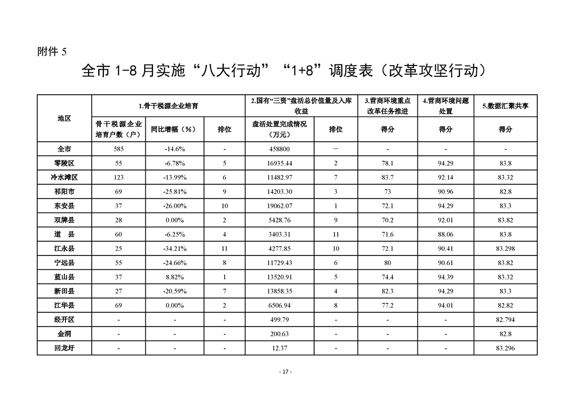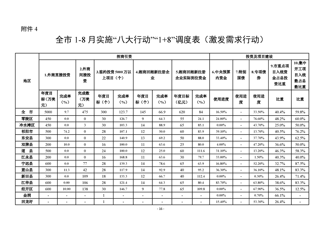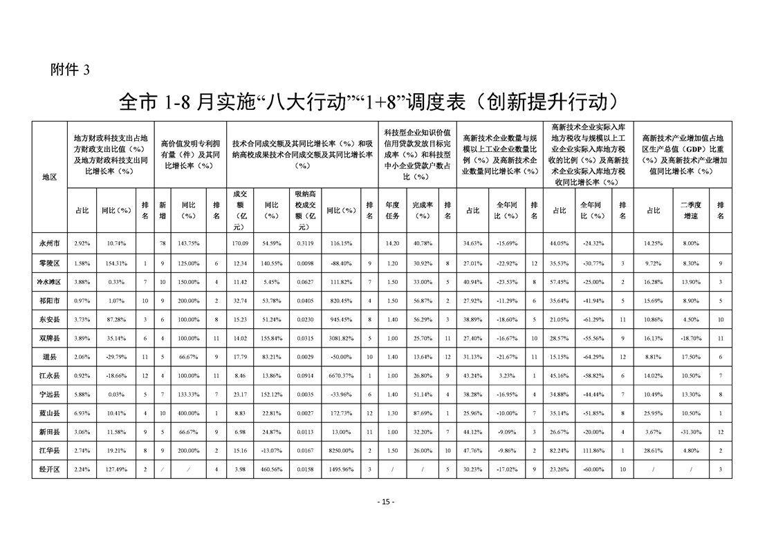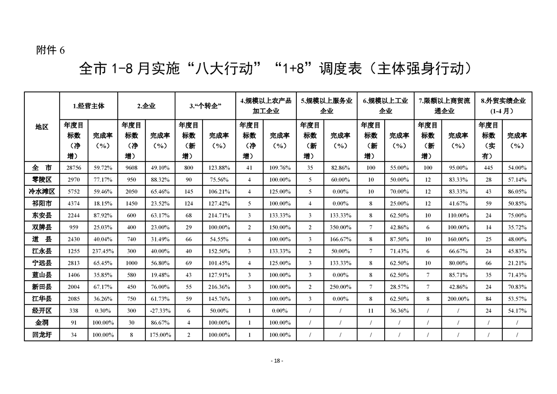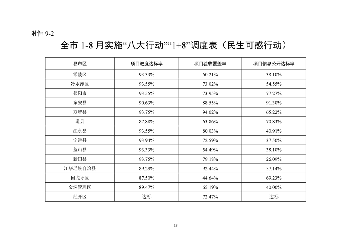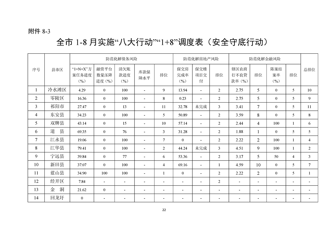 永州市實施“八大行動”工作專報(第21期)(1-8月通報)