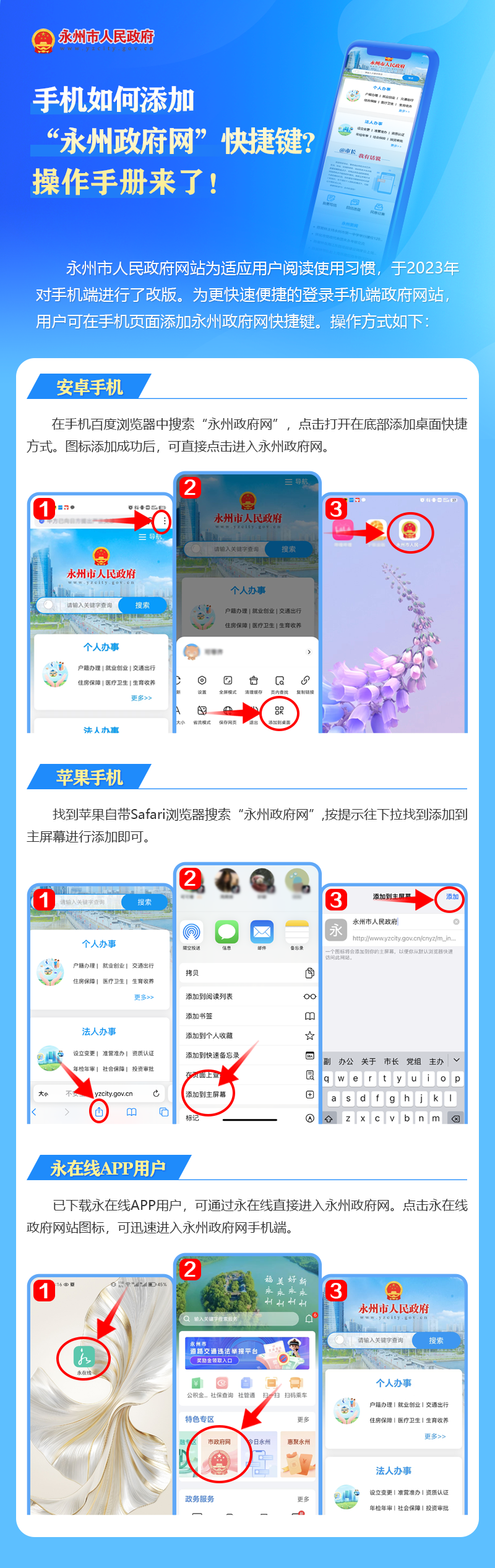 問:手機如何添加“永州政府網”快捷鍵?