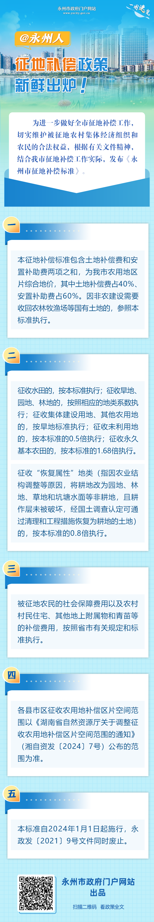 一圖速覽丨@永州人 征地補償政策新鮮出爐!