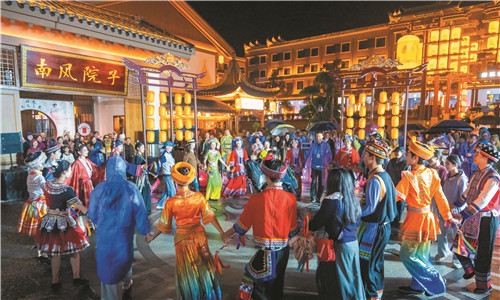10月19日晚,第四屆永州旅游發展大會開幕式在寧遠縣九嶷山景區南風集舉行。當晚,游客圍成圓圈在南風集街區歡快起舞,沉浸式體驗當地的民俗項目,在獨具特色的瑤族風情中,感受夜游九嶷的樂趣。 永州日報全媒體記者 文佳星 攝