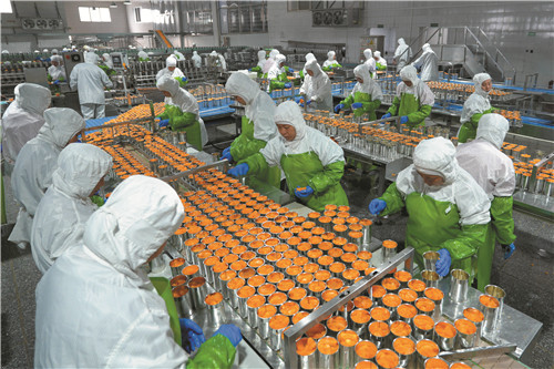11月5日,位于冷水灘區的湖南都成國際食品有限公司內,工人在忙著制作柑橘罐頭。眼下正值柑橘上市季節,當地企業將柑橘深加工成罐頭等產品,銷往國內外市場。近年來,冷水灘區大力發展柑橘產業,不斷延長產業鏈,帶動農民增收,助力鄉村振興。 雷中祥 攝