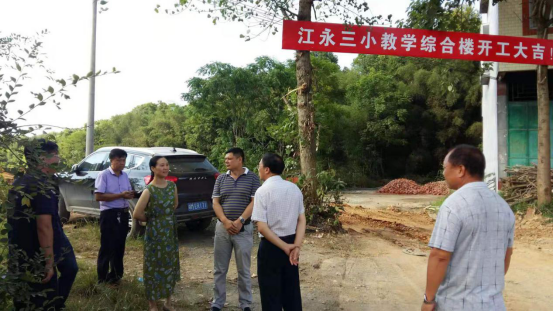 (7月22日,江永縣委常委、宣傳部長楊誠,副縣長何娟現(xiàn)場調(diào)度江永三小建設(shè)工作。)