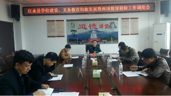 (6月23日,江永縣副縣長何娟主持召開義務(wù)教育均衡發(fā)展迎檢工作調(diào)度會。)