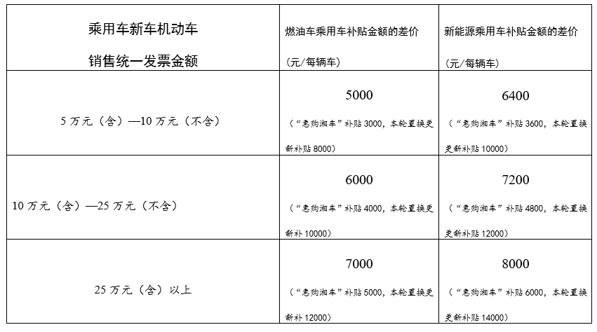 其中,汽車置換更新補貼的額度,由各個市州自行確定。