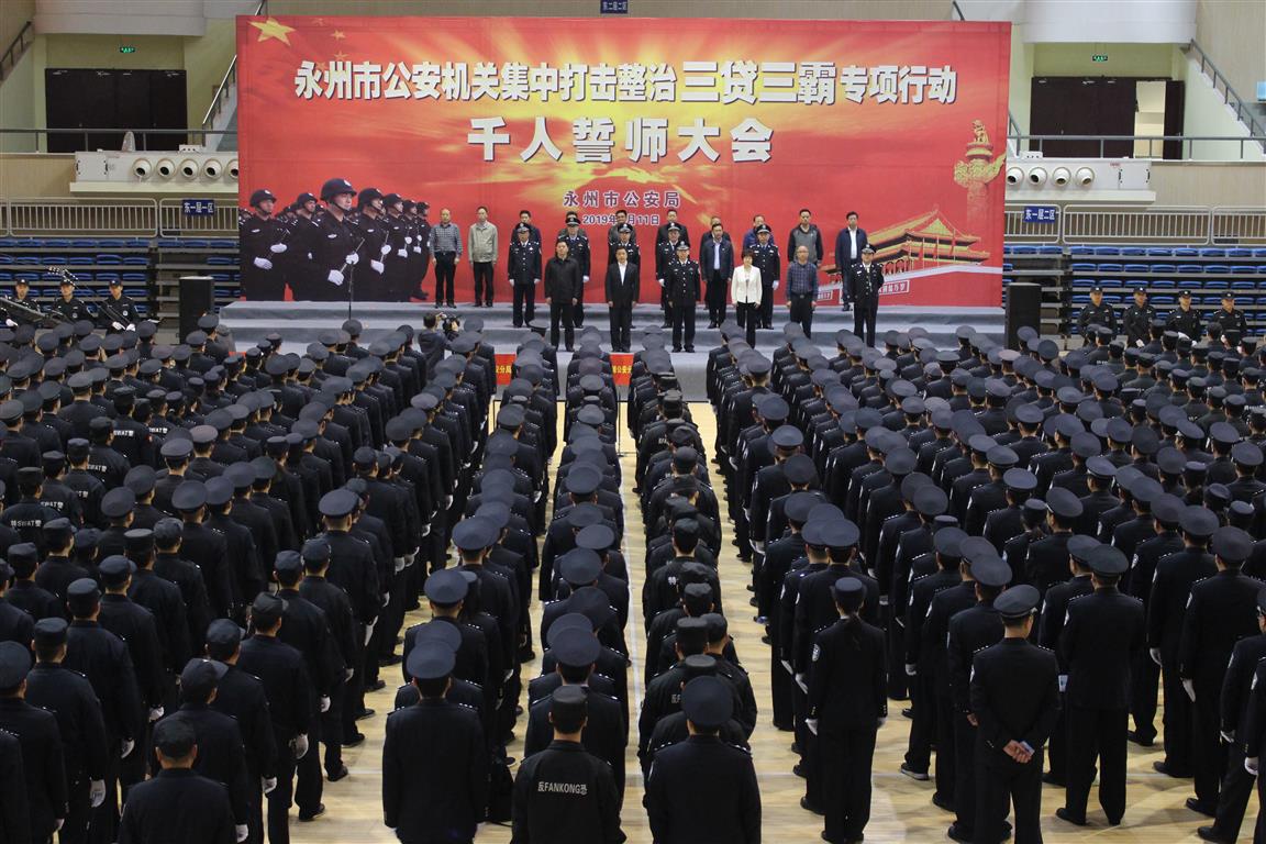 永州新聞網訊(記者 唐敏 通訊員 宋云釗) 4月11日上午,永州市公安機關集中打擊整治“三貸三霸”專項行動千人誓師大會在市體育中心舉行。市委副書記、政法委書記張賀文出席并講話,副市長、市公安局局長劉新良作誓師動員。