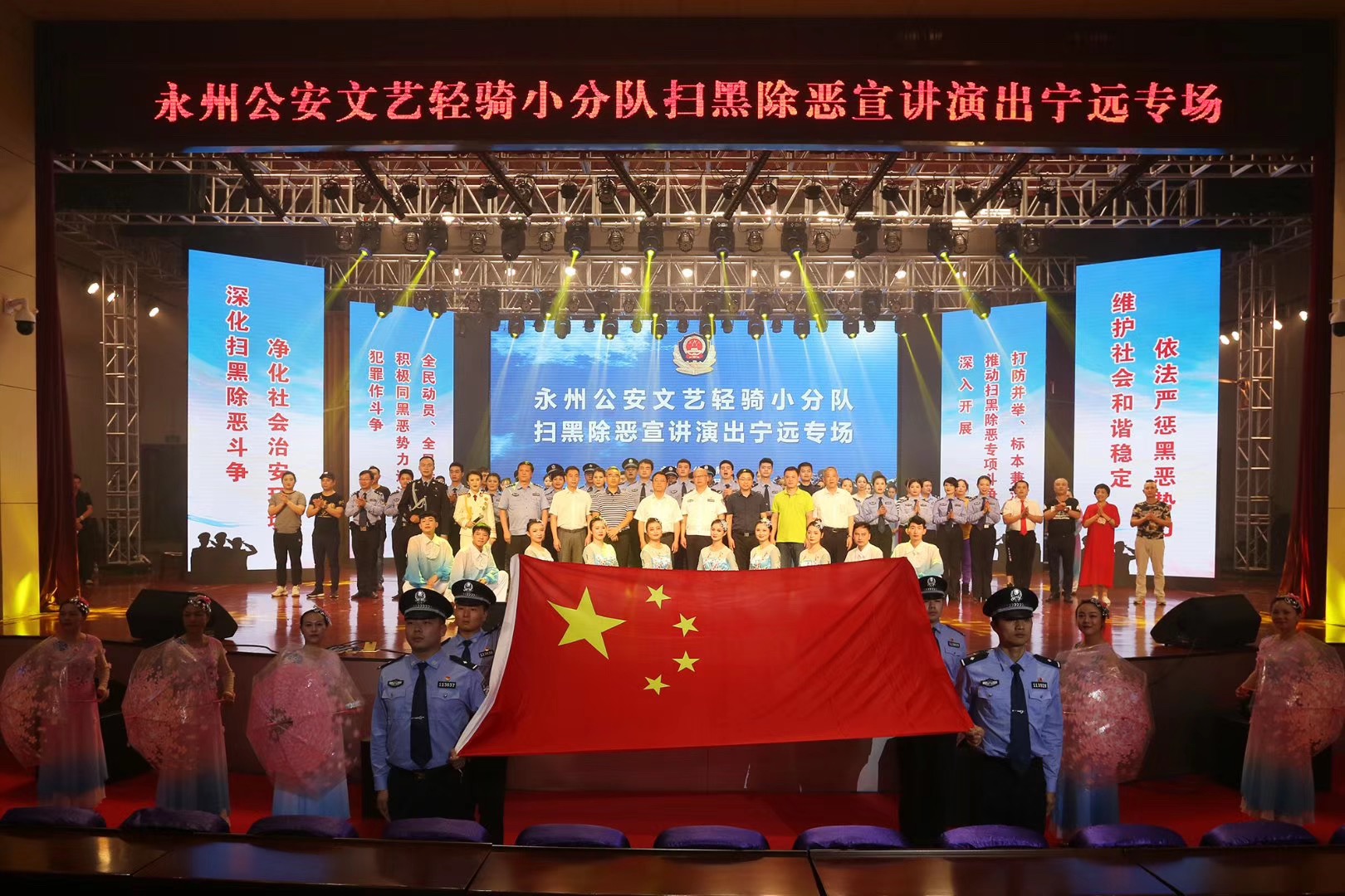 本網訊(通訊員 歐霞) 為進一步掀起掃黑除惡的宣傳熱潮,提高廣大群眾參與掃黑除惡專項斗爭的熱情和干勁,6月10日晚,永州公安文藝輕騎小分隊掃黑除惡宣講演出團走進寧遠,為寧遠人民送上了一場內容豐富、特點鮮明、精彩紛呈的文藝表演。副市長、縣委書記劉衛(wèi)華,市公安局調研員何永清等縣委、人大、政府、政協(xié)縣級領導出席。來自縣直機關、企事業(yè)單位、鄉(xiāng)鎮(zhèn)街道、社區(qū)、人民團體等900余名干部職工和群眾觀看了宣講演出。