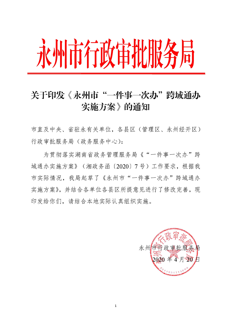 政策解讀>>永州市行政審批服務局解讀《永州市“一件事一次辦”跨域通辦實施方案》