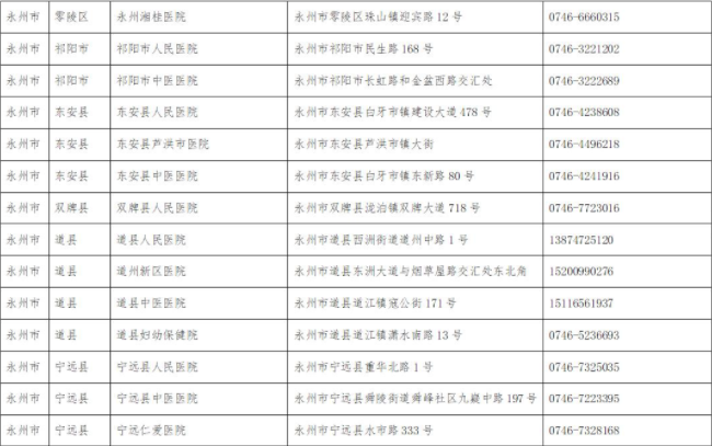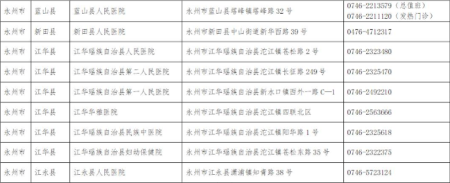 永州市對外開展核酸檢測醫(yī)療機構(gòu)名單
