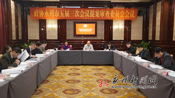 永州新聞網訊(記者 趙威) 1月15日晚上,政協永州市五屆三次會議召開提案審查委員會會議,對收到的提案進行集體會審,市政協副主席張建亮主持會議。