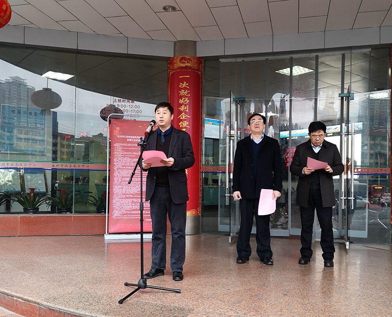 本網(wǎng)訊(通訊員 龍亞芳)1月31日早8點(diǎn),永州市行政審批服務(wù)局辦公大樓前,永州市人民政府秘書長(zhǎng)陳宇榮宣布“政務(wù)服務(wù)新春禮包”正式啟動(dòng)。2019年1月31日起至2019年2月19日(其中除夕至正月初六不上班、2月17日星期天不上班),市行政審批服務(wù)局?jǐn)M于春節(jié)期間組織協(xié)調(diào)各進(jìn)駐窗口單位以及人社、公安出入境、交警等分中心聯(lián)合開展“互聯(lián)網(wǎng)+政務(wù)服務(wù)”、 “公積金+不動(dòng)產(chǎn)”、“不動(dòng)產(chǎn)+稅務(wù)”等套餐服務(wù),推出“最多跑一次”、 “延時(shí)服務(wù)”、“幫您辦”、免費(fèi)復(fù)印郵寄等便民服務(wù),為回家過年?duì)I造節(jié)日喜慶氣氛,為就業(yè)干事創(chuàng)業(yè)開辟優(yōu)質(zhì)服務(wù)。