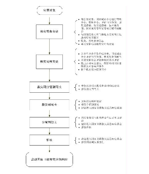 按照以下工作流程,啟動國家Ⅳ級救災(zāi)應(yīng)急響應(yīng)(見流程圖2):