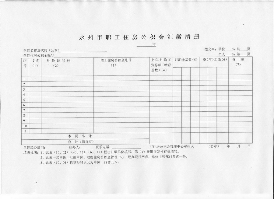 永州市職工住房公積金匯繳清冊