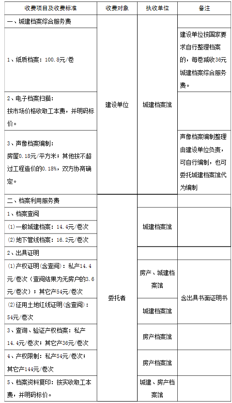 五、建設(shè)檔案利用技術(shù)服務(wù)費(fèi)降低20%后的各項(xiàng)具體收費(fèi)標(biāo)準(zhǔn)如下: