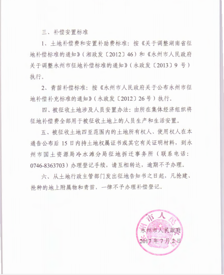 永州市人民政府關于湖南涔天河冷水灘總部調度測控中心項目征收土地的通告